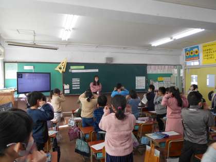 2月24日(水) 3年生 外国語活動「体のパーツを英語で♪」