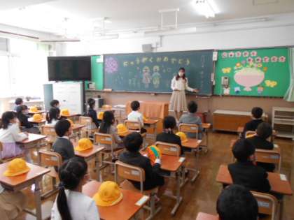 教室では,担任の先生から名前を呼んでもらい,元気よく返事をすることができました。