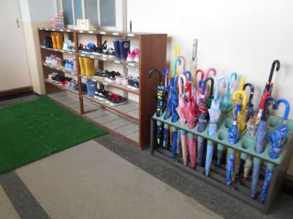 今日は,雨ふりでしたが,傘をくるくる巻いて上手に片付けできました。