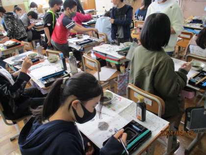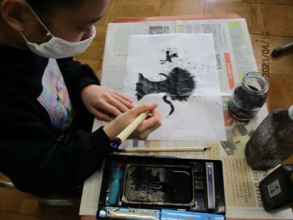 4月19日(月) 6年生 図画工作科「墨を使って」