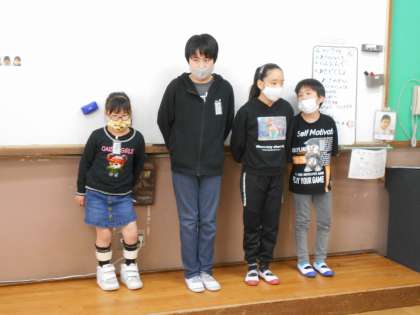3〜4人でいっせいに1つずつ文字を言って,何の言葉か当てるゲームでは,みんな積極的に前に出て問題を出してくれました。