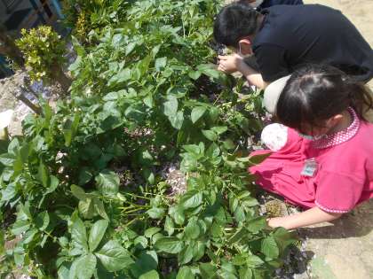 今日は,じゃがいもの「めかき」の続きと草引きをしました。