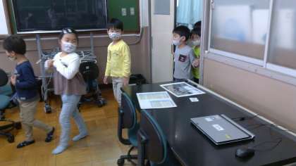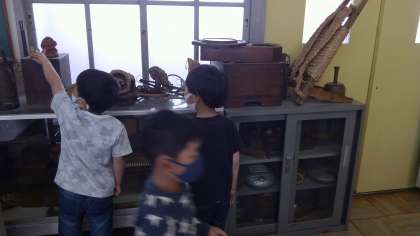 と興味津々で色々な物や教室の疑問を見つけながら歩きました。