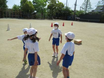 今日のリレーあそびは,「ぴょんぴょんリレー」です。