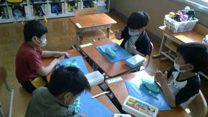 楽しみにしていた粘土。すぐに必要な物を準備し,さっと席に座って待つ子どもたち。
