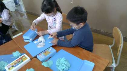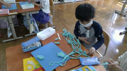 4月23日(金) 1年生 図画工作科「ひもひもねんど」