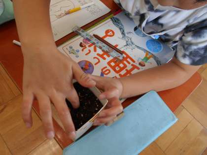 一人一粒ずつ自分のパックに植えました。