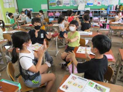 音楽科の学習で「茶つみ」の歌に合わせて,手遊びをしました。