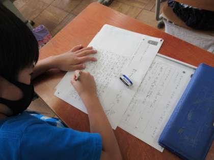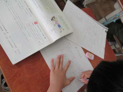 ペアで話し合ったメモをもとに,観察文を書いています。