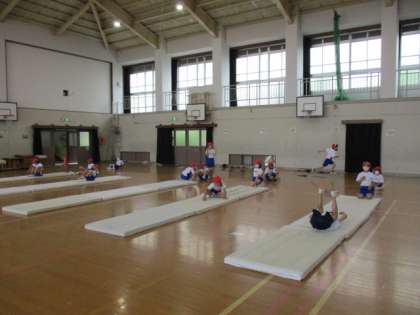 3年生では,今,体育科では,マット運動に取り組んでいます。