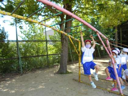 今日は,ジャングルジム,うんてい,総合遊具,なわとびをしました。