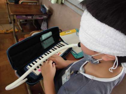 6月8日(火) 4年生 総合的な学習「アイマスク体験 弾く」