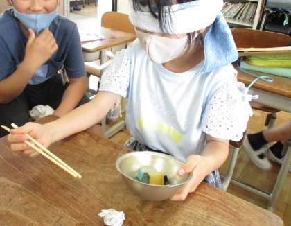 6月8日(火) 4年 総合的な学習の時間「アイマスク体験 食べる」