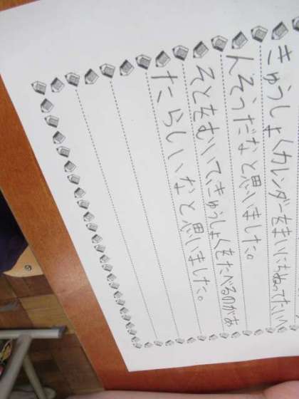 「給食カレンダーって,コスモス学級のみんなが塗ってくれてたんや!」