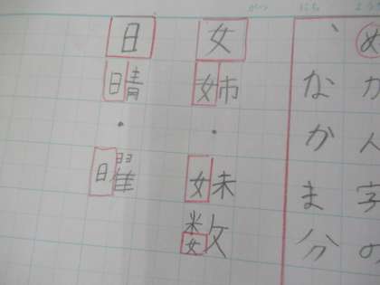 今日は今まで学習した漢字の中から,同じ部分を持つ漢字を探して仲間分けをしました。