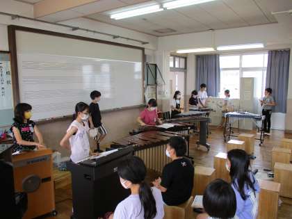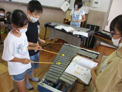 楽器ごとのパートに分かれて練習し,楽器の音色を楽しみながら,メキメキと上達しています。