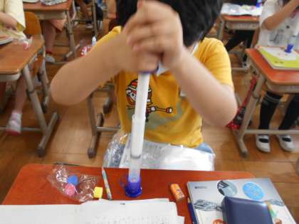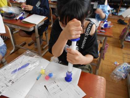 加えた力の大きさと空気の手ごたえの関係を調べました。