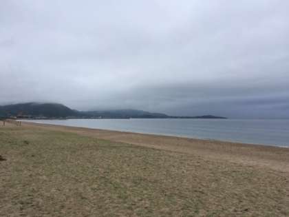 (写真は今朝の慶野松原の砂浜の様子です。雨は上がり、静かなさざ波の音が響いていました。)