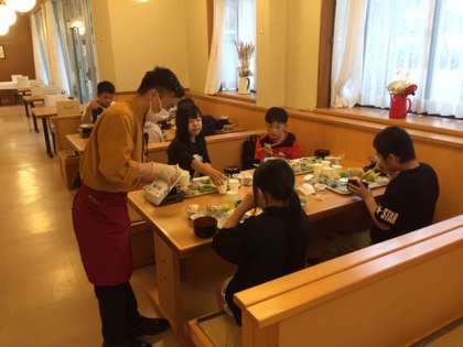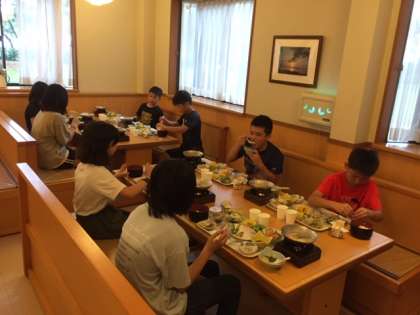 昨晩の夕食同様、品数豊富でボリューム満点の朝食ですが、さすが育ち盛りの子どもたち。