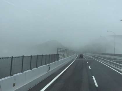 昨日の雨が影響しているのか、霧が少し出ています。