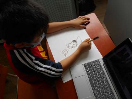 と思い出しながら,楽しそうにかいていました。