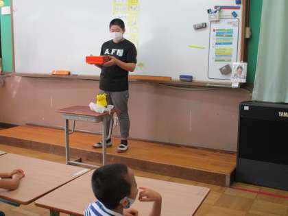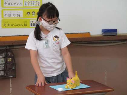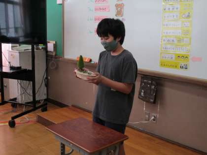 クラスの友達が夏休みにがんばって作ってきた自由作品の紹介を,朝の会で少しずつしていきました。