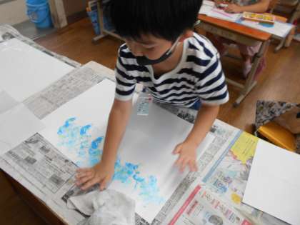 今日は,絵の具を使い,「ぬたくり」という技法で背景をつくりました。