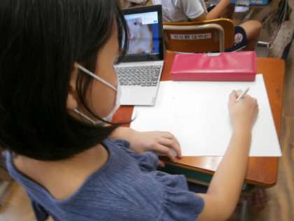 お話を聞いてそれを絵に表す学習をしています。