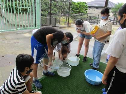 水槽に水を入れて,海の状態にしました。