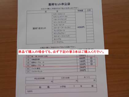 9月10日(金) 1年生 「絵の具セット購入のお願い その2」