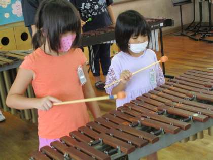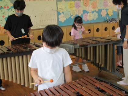 鍵盤ハーモニカやリコーダーが練習できないので,みんなで木琴の練習をしました。