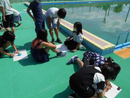 「あっ!かげが動いてる!」「プールに入りたいなぁ。」という声も聞こえてきましたよ。