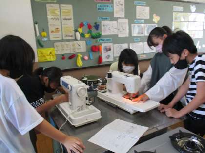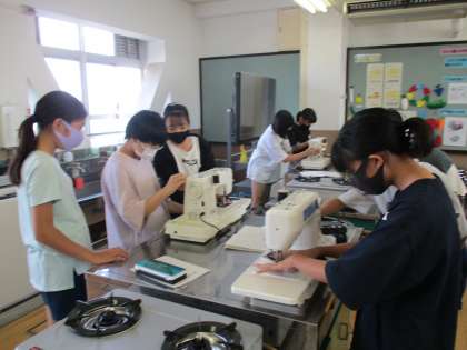 今日から家庭科室でミシンを使ってトートバッグ製作を始めました。