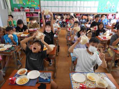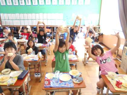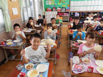 10月6日(水) 4年生 給食「今日はメロンパン☆」