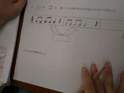 ♩(タン)と♫(タタ)のリズムを組み合わせて,作曲しました。