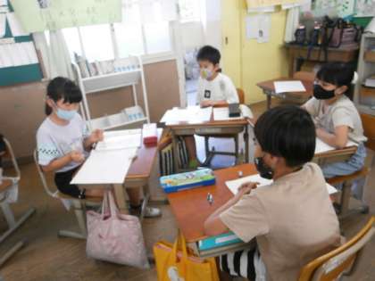 自分で曲を作ると聞いて,みんな「えー!」と言いながらも嬉しそう。