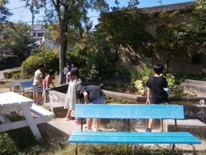 みんなで池のまわりの長さをはかっていました。