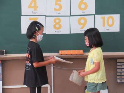 「ちゃんと答えられた!」「英語が好きになった!」と子どもたち。