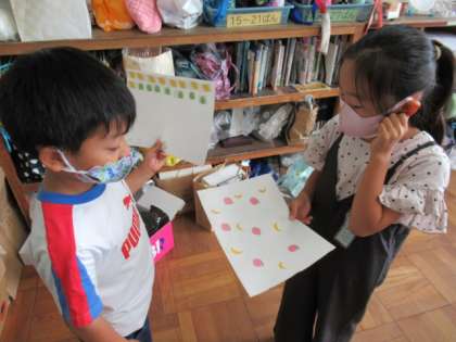 前回作った「いくつかなポスター」を使って,友達と「いくつかなクイズ」の活動をしました。