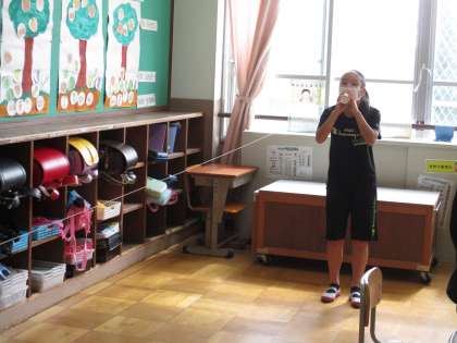 糸電話を使って話をすると・・・糸が震えている!!