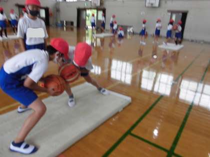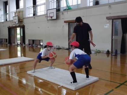 途中で,腰を低くした構えで行うと安定して力が出せることを学びました。後半は,安定感を得ることで,子ども達は主体的に活動し始めました。