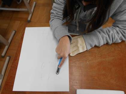 版画の学習で,彫刻刀を使い始めました。