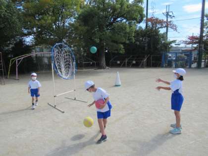 今週から体育の学習でパスゲームが始まりました。