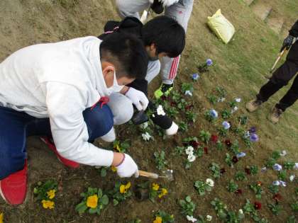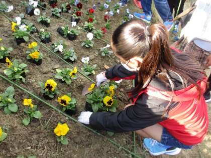 なでしこ・パンジー・ビオラなどの花を植えました。