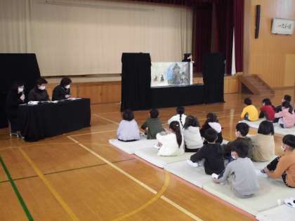 コロナ禍ということもあり,体育館で各学年ごとの実施となりましたが,一人一人の役になり切った感情豊かな読み聞かせ,そして,迫力ある舞台装置に,学年を問わず,子どもたちが物語の世界にすっかり入り込む姿が印象的でした。