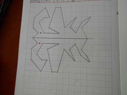 単純な三角形だけではなく不思議な形の線対称をかくことができました。