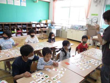 英語でじゃんけんをしたり,聞こえた単語のカードをとるゲームをしたりと終始,楽しみながら学習をすることができました。