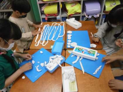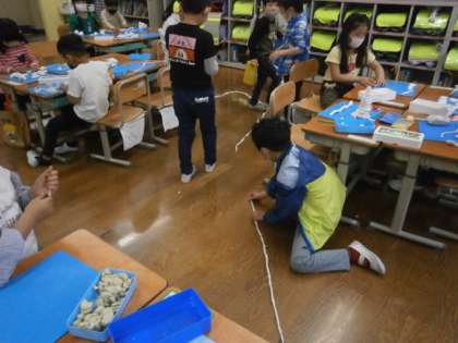 図画工作科では,「ひもひもねんど」の活動をしました。