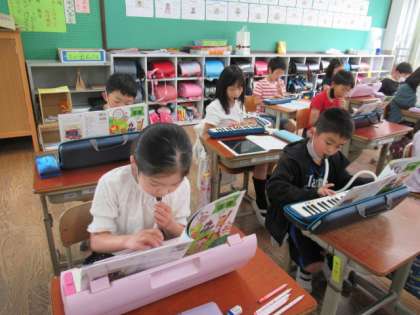 ただ吹くだけでなく,歌のイメージや音のまとまりを意識して吹こうとする姿が見られます。