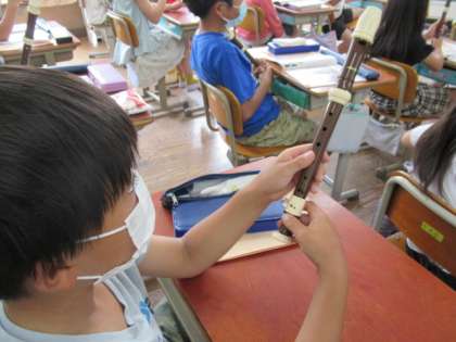 子どもたちは初めてのリコーダーにわくわくした様子でした。